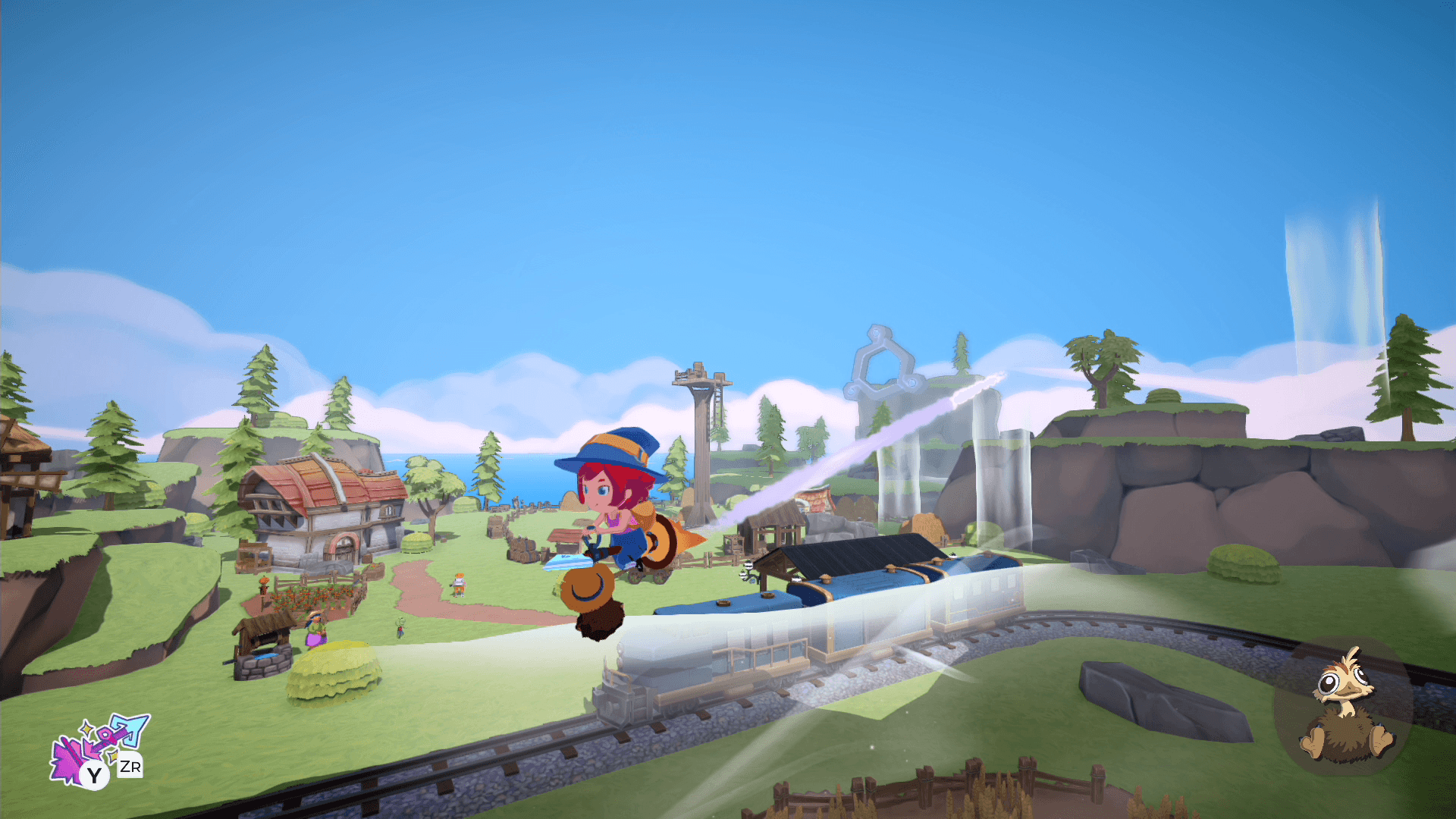 ・ほうきに乗って自然あふれるミニオープンワールドの世界を隅々まで探索しましょう。