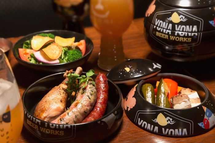 ホテル周辺のお店とコラボレーションして、宿泊者限定メニューを開発しました。赤坂の料亭文化から着想して、和の要素を取り入れたメニューです。夜は、クラフトビール専門店の「YONAYONA BEER WORKS赤坂店」で、限定おつまみをオーダーできます。限定おつまみは、「よなボール」というお重に見立てた三段に分かれる有田焼の器に入っています。さらに、入店後にすぐ飲める、ウェルカムビールのサービスも。朝は、ホテル1階にあるカフェ「上島珈琲店 赤坂一ツ木通り店」で、「真鯛出汁香るスクランブルエッグサンド」の朝食メニューを用意。店内でゆっくりと過ごすプレートスタイルでも、テイクアウトをして、旅の合間の好きなタイミングで食べられる「Grab&Go」スタイルでも、好みに合わせて選べます。