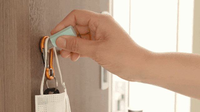 が内蔵されているので鍵やマスクなどもかけられて便利!長期継続使用可能