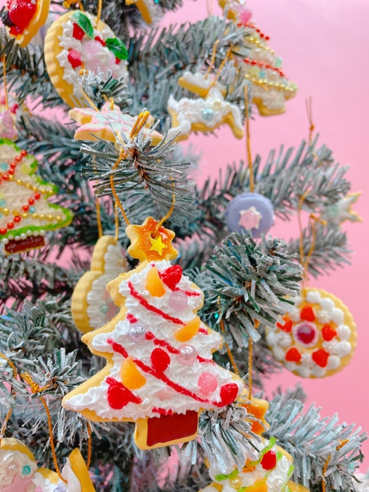ツリーや星、猫の形のクッキーベースを選んで、樹脂のクリームでデコレーションし、本物そっくりの世界でひとつのスイーツのオーナメントをつくります。防水素材で制作するのでベランダにも設置可能です。