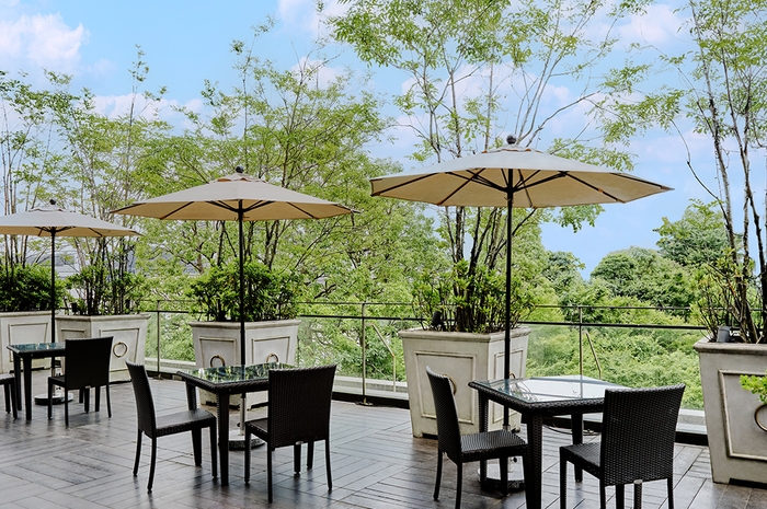 桜や紅葉など、日本ならではの四季折々の表情を見せる庭園を一望できるテラスでは、気取らずに楽しめるワンプレートのカジュアルランチやタパス、カクテルなどを、爽やかな風を感じながらお楽しみいただけます。