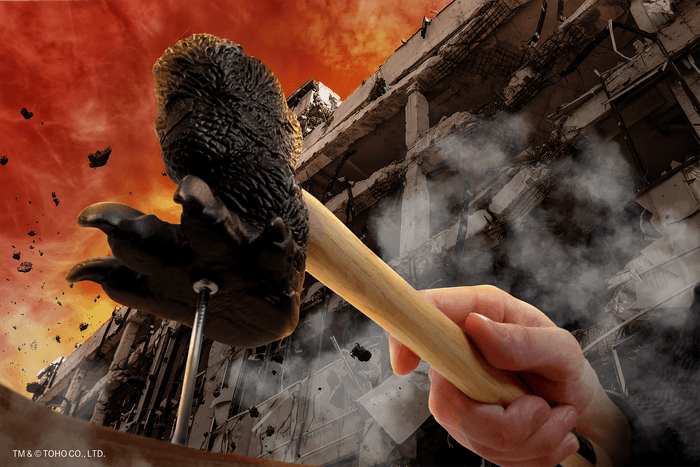 ゴジラの足で釘を踏み付けて打つ!ゴジラハンマーが新発売