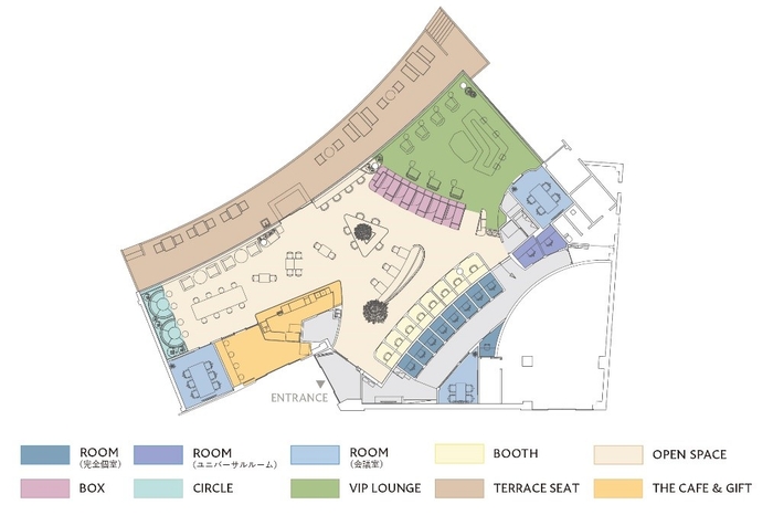 ルーム席(完全個室):9席、ユニバーサルルーム:2席、