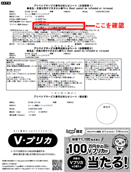 ローソンやミニストップなどに設置されているLoppiで対象のVプリカを購入すると、抽選で1,100名さまに総額100万円分のVプリカが当たる!
