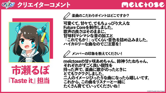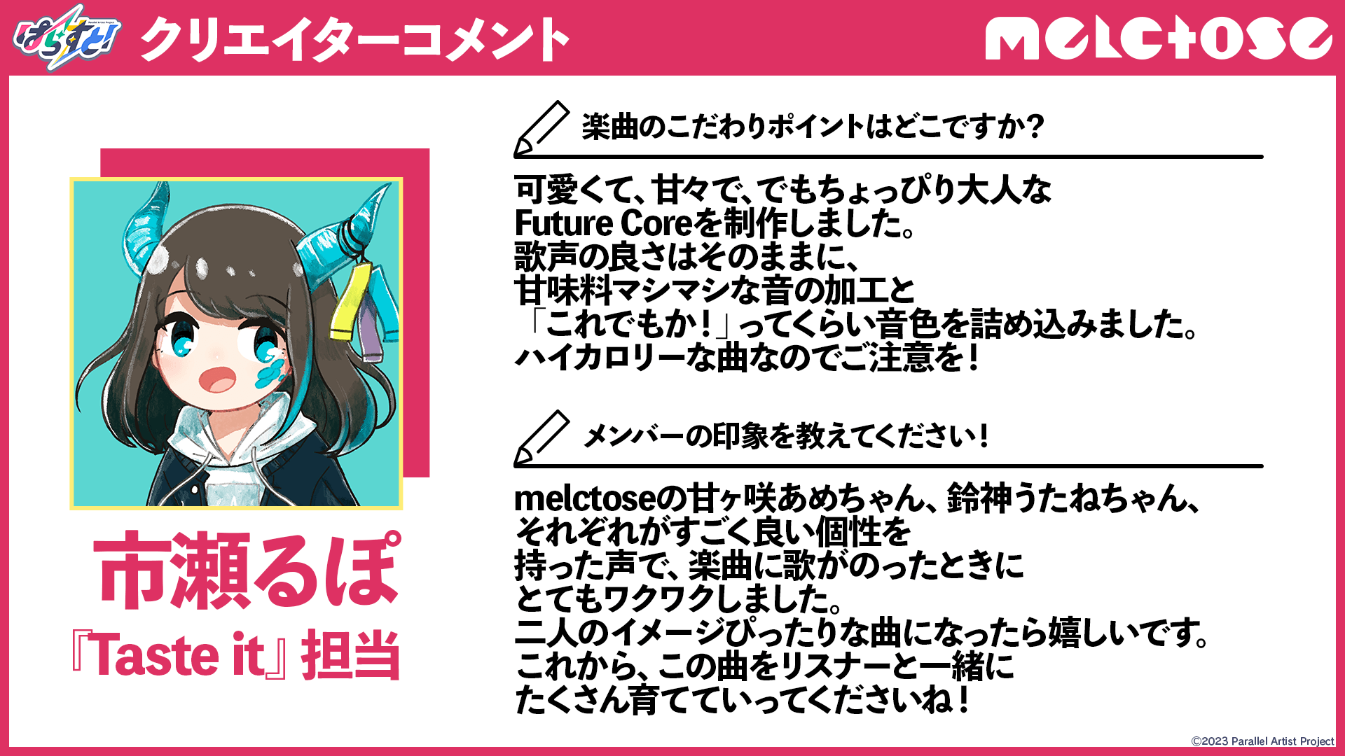 VTuberプロジェクト「ぱらすと!」のユニット「melctose」から、新曲「Taste it」が10/19にリリース!描き下ろしイラストも初公開!