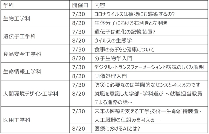 ・模擬講義(両日、学科ごとに開始時間が異なります)