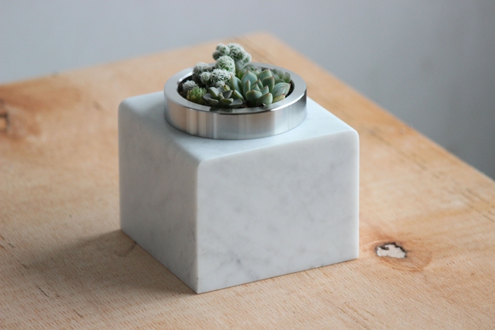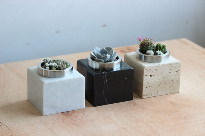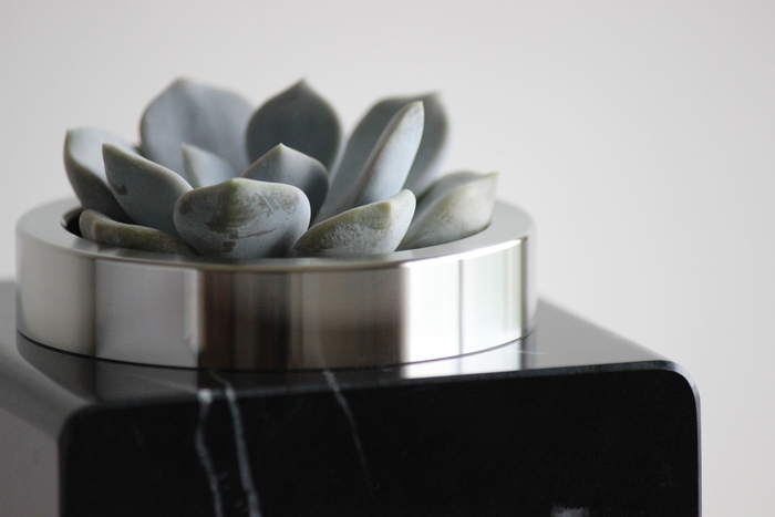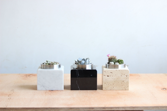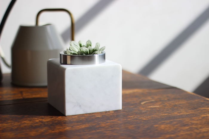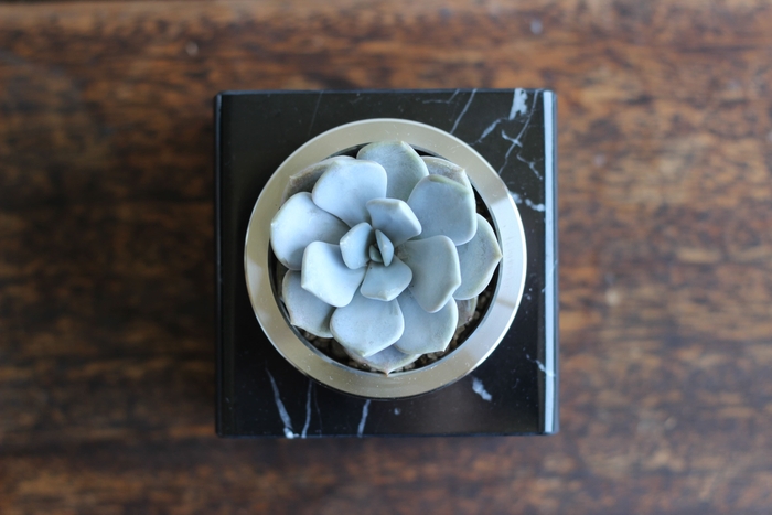 ~天然大理石とステンレスが融合した高級多肉用鉢で土の水分量を目視確認~