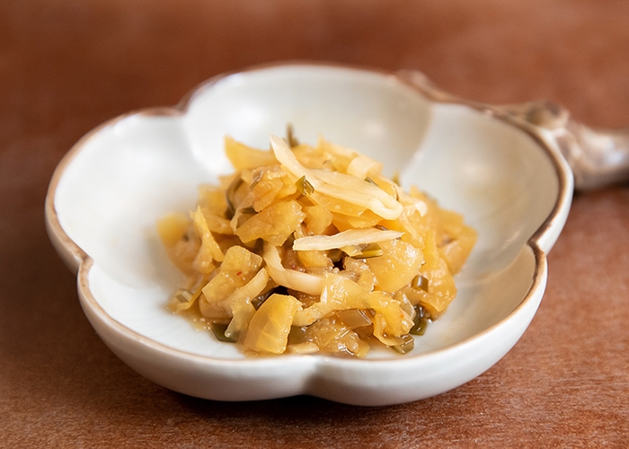 この「味よし」に千切りにした「岩下の新生姜」をほどよく混ぜ込んでなじませて、『味よし 岩下の新生姜入り』が誕生しました。しょうゆと海産物由来の深みある旨味に、大根・きゅうりのパリパリ食感が続き、最後に「岩下の新生姜」ならではのやさしい辛さと爽やかな香りがアクセントを添える、風味良くすっきりとした味わいに仕上げました。
