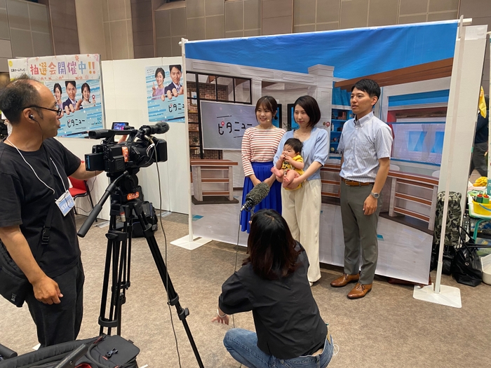 HOME夕方の報道情報番組『ピタニュー』のスタジオをバックに、親子で、ファミリーで「ピタニュー」の5秒CMを撮影しませんか?!