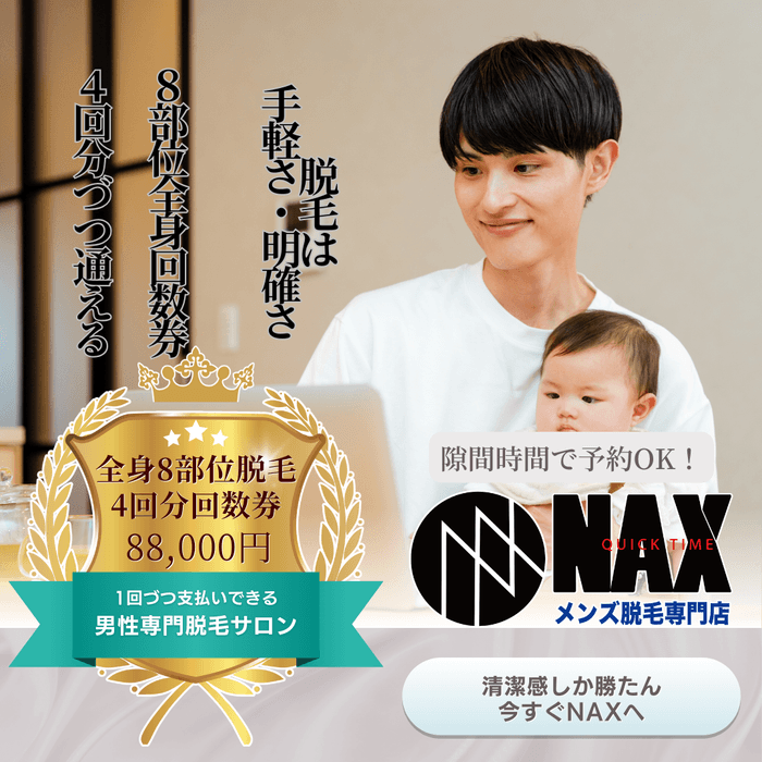 メンズ脱毛サロンNAXでは、自分に必要な8部位を自由に選んで脱毛できる『全身8部位脱毛回数券』をご用意しています。しかも、回数券は4回分と短期間で効果を実感しやすいのが特徴です。気になる部位だけを効率的に脱毛しながら、スムーズに施術を受けられるこのプランの魅力について詳しくご紹介します。