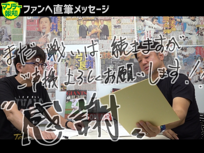 また、亀井選手からファンへ向けた直筆のメッセージも紹介。その熱い思いとは-。日本シリーズでも日本ハムと戦った09年の9回同点弾、ソフトバンクと激突した19年の先頭打者アーチからの連発など、まさに記憶に残る本塁打を放ってきた苦労人。その花道に迫った動画になります。