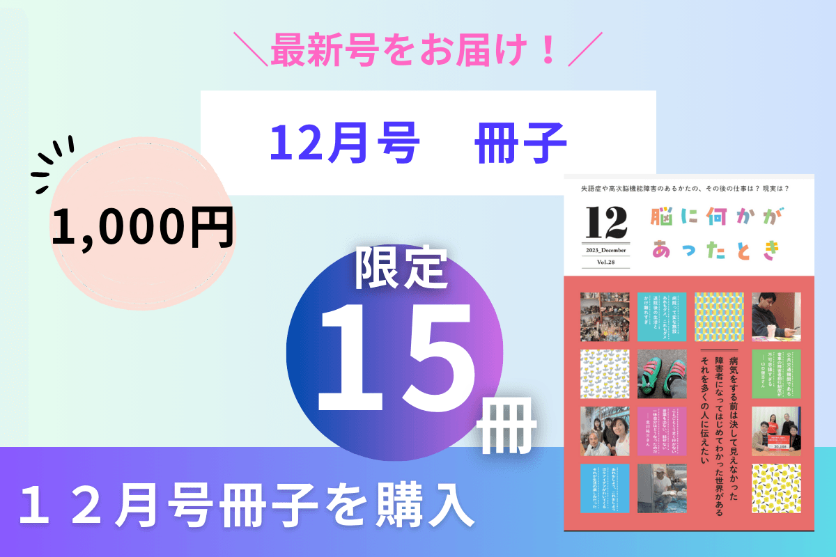 NPO法人Reジョブ大阪(本社:大阪市都島区片町1-5-13 大手前センチュリービル4階、代表:多田 紀子)は、社会に広く理解されにくい高次脳機能障害および失語症の当事者たちが自らの就労における課題と工夫を掲載した月刊冊子「脳に何かがあったとき」を、障害当事者とともに全国展開を目指す事業を開始します。その事業資金を募るため、クラウドファンディングを12月13日(水)にCAMPFIREにて開始しました。この取り組みは、障害の現実を社会に伝え、より深い共感と支援を促進することを目的としています。