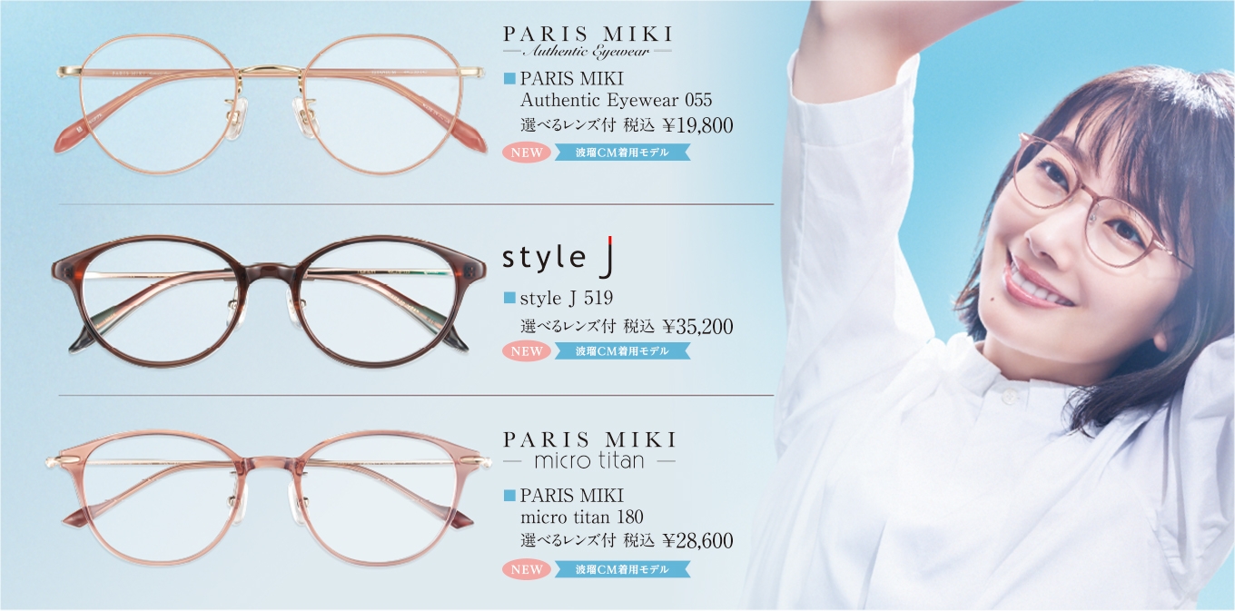 波瑠CM着用モデル(NEW)もレンズ付¥19,800~ 店頭にて展開しております。