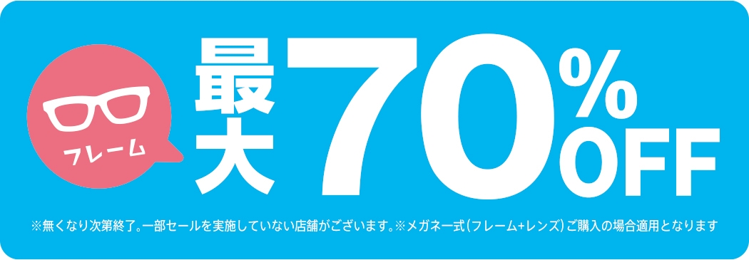 対象フレームが通常価格から30%・50%・最大70%OFF!