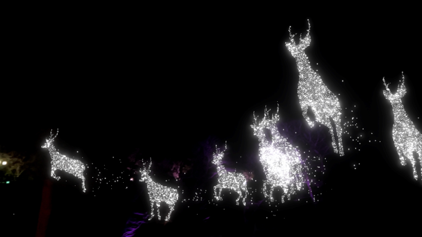 AirMappingShow (エアーマッピングショー)は、夜空の3次元空間上にAR(拡張現実)の技術で映し出される光と音で奏でる3D映像作品です。光の粒子が立体的に集合し、形状を変えながら夜空の3次元空間で動き、輝きます。
