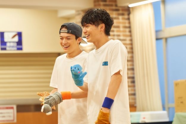 Bメロ担当の松倉海斗と松田元太は、「こども教育コース」の教室から借りてきた “パペット”を使った演出を考えることに。松倉は「『子供も楽しめる!!』というテーマを一番表現しやすいと思うので、伝わったらいいな」と話す。