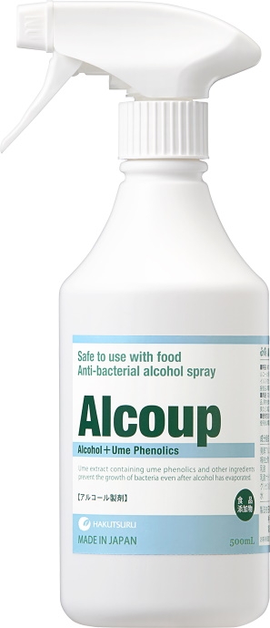 白鶴酒造株式会社は、100%食品成分を使用した安心・安全なアルコール除菌スプレー「白鶴Alcoup(アルコープ)」を2021年2月8日(月)新発売します。当商品は日本一の梅の産地である和歌山県で研究開発された梅ポリフェノール(※)を含む梅抽出物等を配合することで、アルコールが蒸発した後も細菌の繁殖を抑制することができます。