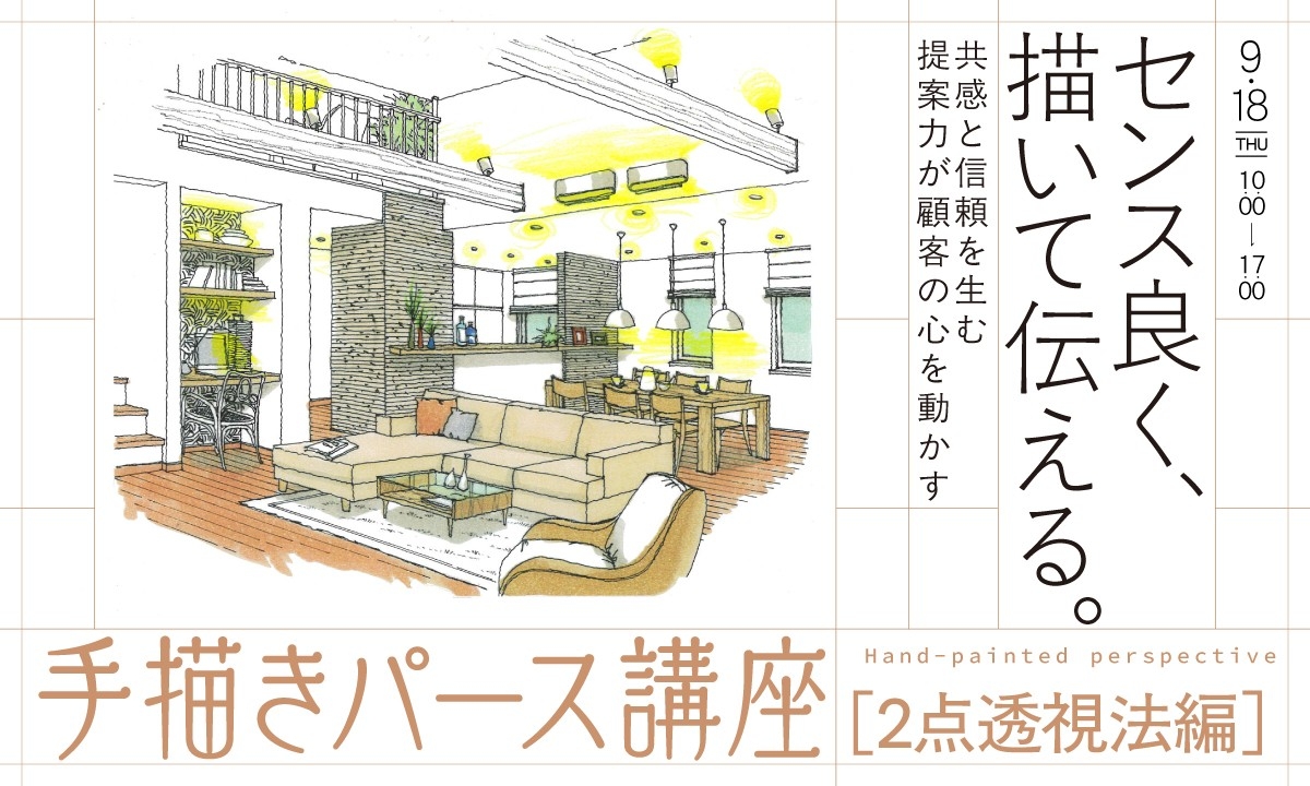 新建ハウジングは「手描きパース講座」を2025年9月18日(木)、オンライン(Zoom)にて開催いたします。