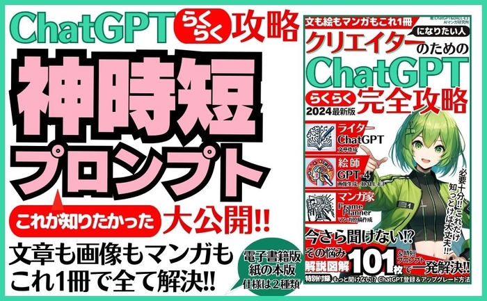 基本となる文章作成の方法、一歩進んだ画像作成の方法、更に、ChatGPTを活用して簡単にマンガを作成する方法まで、本書では多くの図解を用いて解説。この1冊を読めば、あなたも諦めていたクリエイターへの道が再び拓(ひら)けるかもしれません。