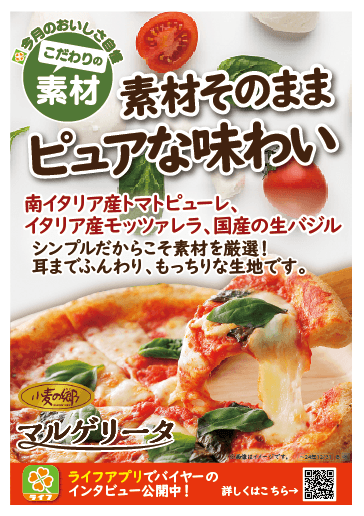 ピザは1年間で12月が一番売れます。ピザの中で一番人気のあるマルゲリータをさらにおいしくしたいと思い、ピークに合わせリニューアルしました。一番のこだわりは具材です。素材本来の自然なおいしさを味わえるピザに仕上げました。