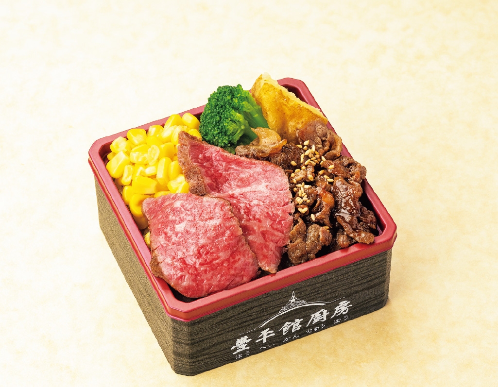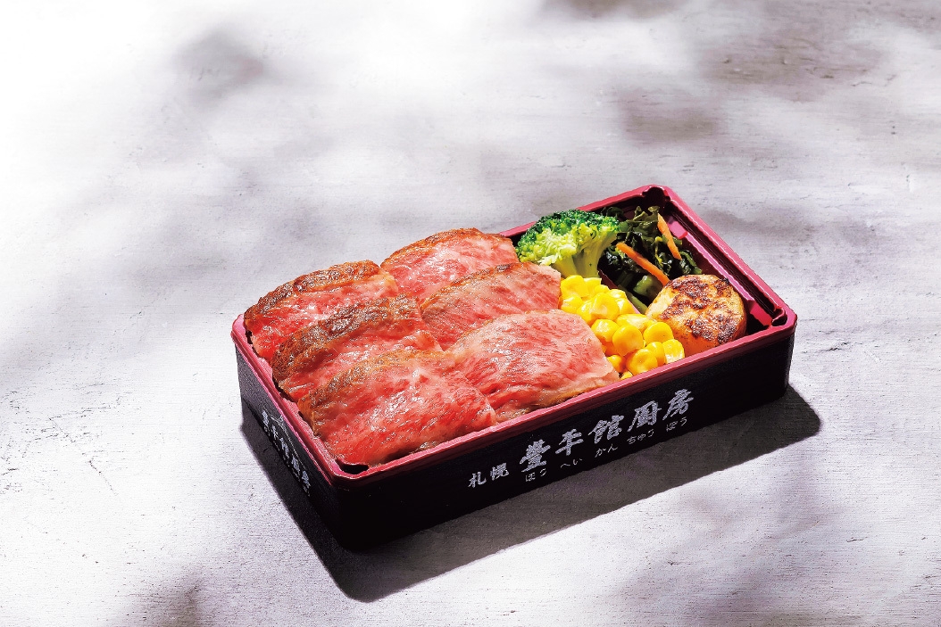 昆布出汁に漬け熟成させた十勝和牛ロースを豪快に盛り込んだステーキ弁当。