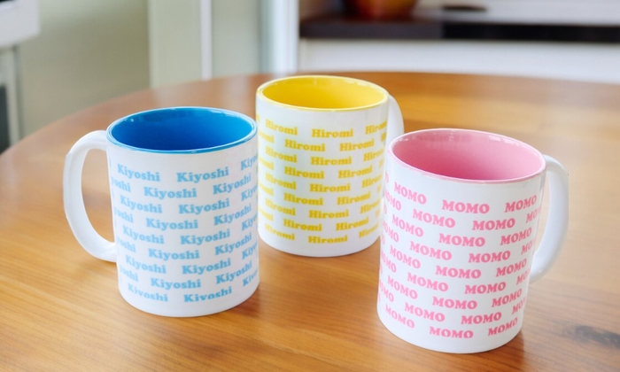 ネーム柄商品は、マグカップやハンドタオル等様々な種類を取り揃えております。