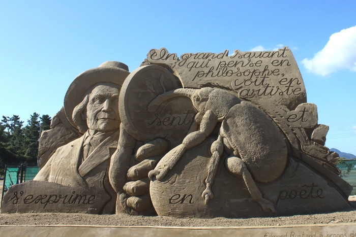 博物学者アンリ・ファーブルが生誕200年にあたることから、様々な昆虫を砂で再現しています。