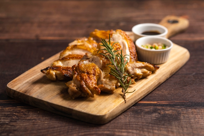 さくっとした歯切れと噛むごとに旨みが溢れ出す「はかた地鶏」を香ばしくグリルしました。
