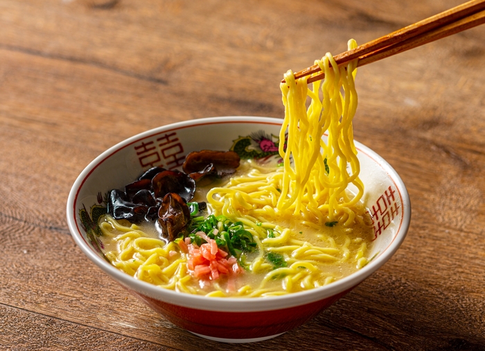 博多と言えばラーメン!あつあつの豚骨ラーメンを出来立てでお届け。