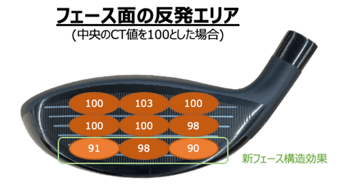 高硬度かつしなやかなマイティマレージング鋼を使用した新フェース構造を採用。ボール初速とフェースの反発性能が向上しております。