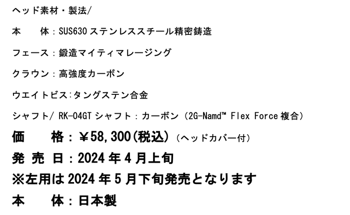 ドライバーは、新構造ストライクスピード・カーボン(StrikeSpeed Carbon)を採用。素早いしなり戻りと高い復元力を生む先進カーボン「2G-Namd™ Speed※」をソール部に複合したことで、オフセンターヒットでも高初速で飛ばすことを狙います。ソール部は従来よりもカーボン複合エリアを10%拡大し、2G-Namd™ Speedを複合したカーボンクラウンとの相乗効果で、シリーズ最高の“飛び”を実現するカーボンコンポジットドライバーと仕立てました。