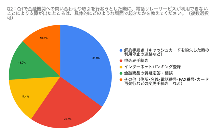 NPO法人インフォメーションギャップバスター (以降:IGB、所在地:横浜市港北区、理事長:伊藤芳浩) は、2021年7月からの正式な電話リレーサービス開始に先立ち、現在試行中の電話リレーサービスを活用して金融機関に問合せ・手続きをする際の課題についての調査を実施しました。