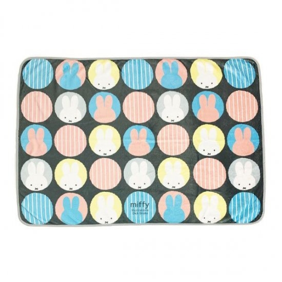 長方形のブランケットにも、ミッフィーのオータムカラーが登場です。シックなカーキのブランケットに、黄色やブルーのドット模様がキュートですよね。ドットの中がストライプになっていたり、ミッフィーのお顔がデザインされていたりと、全てがキュート♡