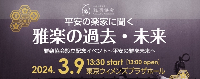 『平安の楽家に聞く雅楽の過去・未来 雅楽協会設立イベント~平安の雅を未来へ』