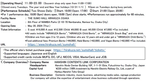 株式会社阪神コンテンツリンクは、5月30日(木)にオープンするインバウンド向け相撲エンタテインメントショーホール「THE SUMO HALL日楽座OSAKA(ザ・スモウホール ヒラクザ オオサカ)」で提供するお弁当のラインナップを決定しました。