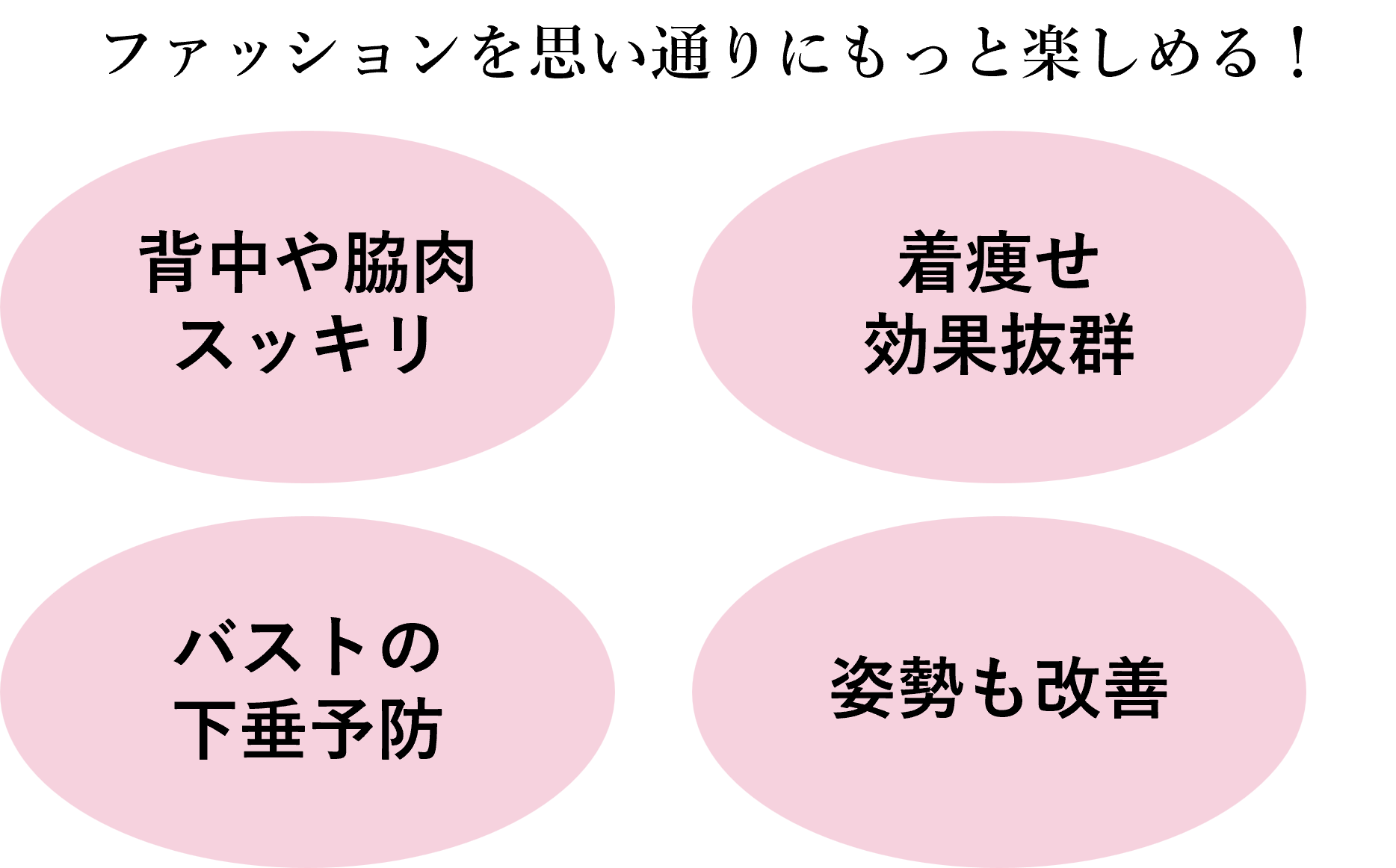脇高かつ固すぎないダブルボーンでハミ肉の横流れもストップし着痩せ効果抜群。