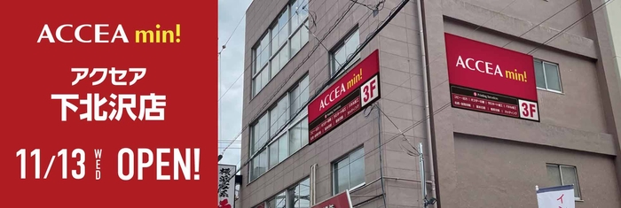 株式会社アクセア(本社:東京都千代田区、代表取締役社長:吉田忠司、以下アクセア)は、新しい店舗形態ACCEA mini(アクセアミニ)の3店舗目「アクセア下北沢店」と、大阪11店舗目の「アクセア南森町店」の2店舗を2024年11月13日(水)にオープンいたします。ACCEA mini(アクセアミニ)はアクセアの主要サービスをぎゅっとコンパクトにまとめたキャッシュレス対応の新しいカタチの店舗で「アクセア下北沢店」が3店舗目となります。