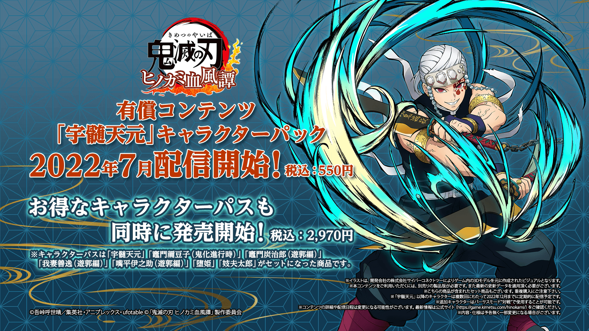 併せて、全5回をセットにした「鬼滅の刃 ヒノカミ血風譚 キャラクターパス」の販売も開始いたしました。さらに、追加キャラクターパック第1弾の配信と合わせて、無償アップデートも実施いたしました。