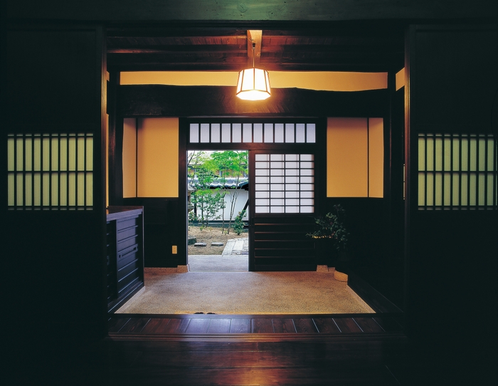 地域とのつながりを保つことに配慮した住まいは、玄関をはじめ、それぞれの部屋は広めにとって、どこでも客が訪れやすく、また迎えやすくしています。特に2階には、地域の人たちに開放するギャラリーを用意。たくましい構造の梁は室内の意匠として生かしながら内部の統一を図りました。最初は再生することに半信半疑だったそうですが、祖先の残したものを大切に受け止め、次代へ伝えることができたことを大変満足し喜ばれています。