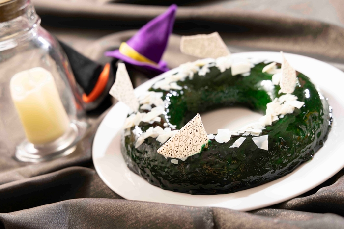 グリーンアップルシロップとりんごのコンポートを練り込んだ生地をしっとりと焼き上げ、魔女が差し出すりんごを思わせる輝きを纏わせました。怪しくきらめく見た目とは裏腹に、ホワイトチョコの濃厚な甘みと、りんごのシャキッとした食感が重なり、口いっぱいに優雅な余韻が広がります。美味しさに心を奪われるのは、魔女の魔法にかかった証かもしれません…♪