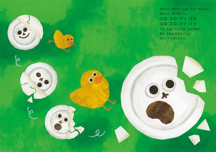 ねずみたちのチーズ、にわとりの卵の殻、パン屋さんのじまんのパンで、