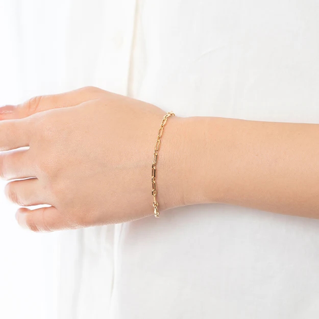 上品な輝きを放つチェーンブレスレットは、日常使いはもちろん、特別なシーンにもぴったりです。