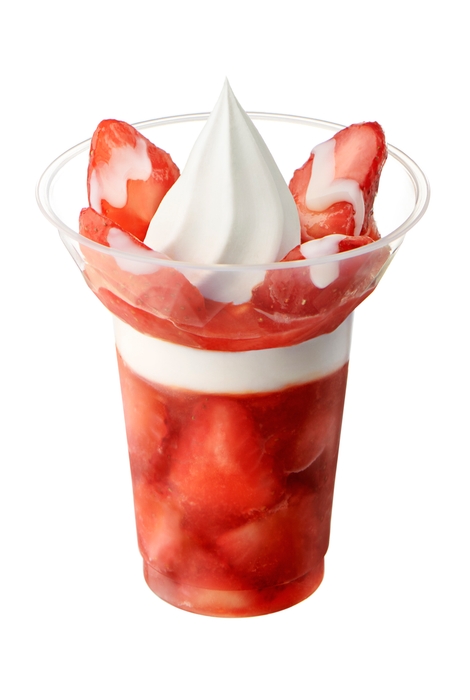 ★とよのかいちご、果肉を100%使用。いちごソース部分の果肉配合量を増やし、よりいちごを味わうことができ ます。いちごと相性抜群の練乳をトッピングし、やさしい甘さとコクのある味わいをプラスし、満足感のある「いちごパフェ」に仕上げました。