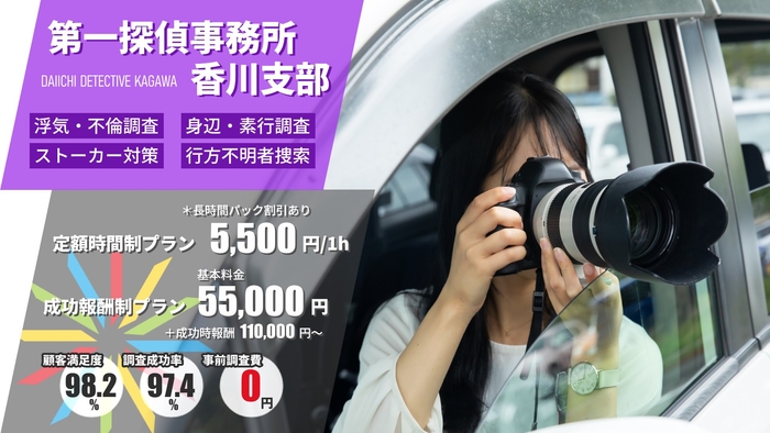 第一探偵事務所『香川支部』を含む第一探偵グループでは、ご依頼者様に費用対効果の高い調査結果をお届しています。