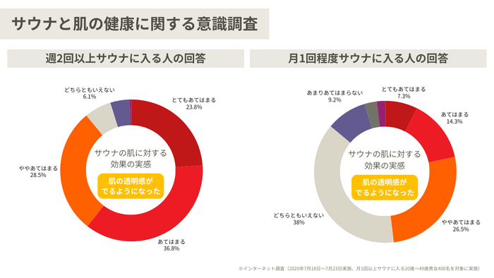 人とのコミュニケーションにおける第一印象は、最初の3~5秒で決まるといわれています。そして「ビジネスシーンで最も好印象な肌の要素は、シミや肌荒れのないツヤ肌」という調査結果も(※1)。日常の様々な局面で印象を左右する「肌の健康」。これを「サウナ」が向上させる可能性について、消費者意識調査を行いました。結果を踏まえ、皮膚科医の専門的知見からも「サウナで肌活」を解説します。