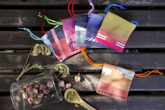 キャラクターのイメージでデザインされた全8種類の限定巾着袋から1つを選んでいただき、10種類以上の香料から自身の好みに合わせて香りを調合し、世界にひとつだけの香り袋(サシェ)をつくることができます。
