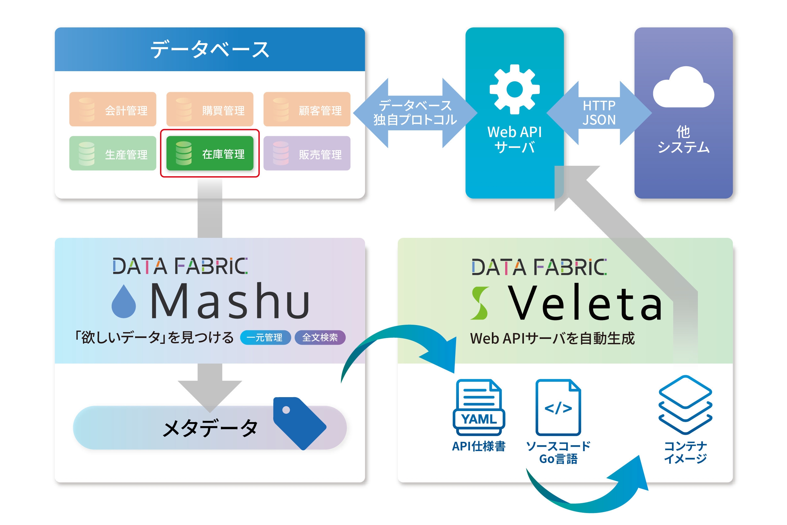 DXの実現のため、業務システムに新たなリアルタイムのデータ連携が望まれています。Veletaは、主にデータの供給側でビジネスの変更を伴わない既存システムを一切改修することなく、データ供給が可能となるWeb APIサーバーを自動生成できるユニークなサービスです。