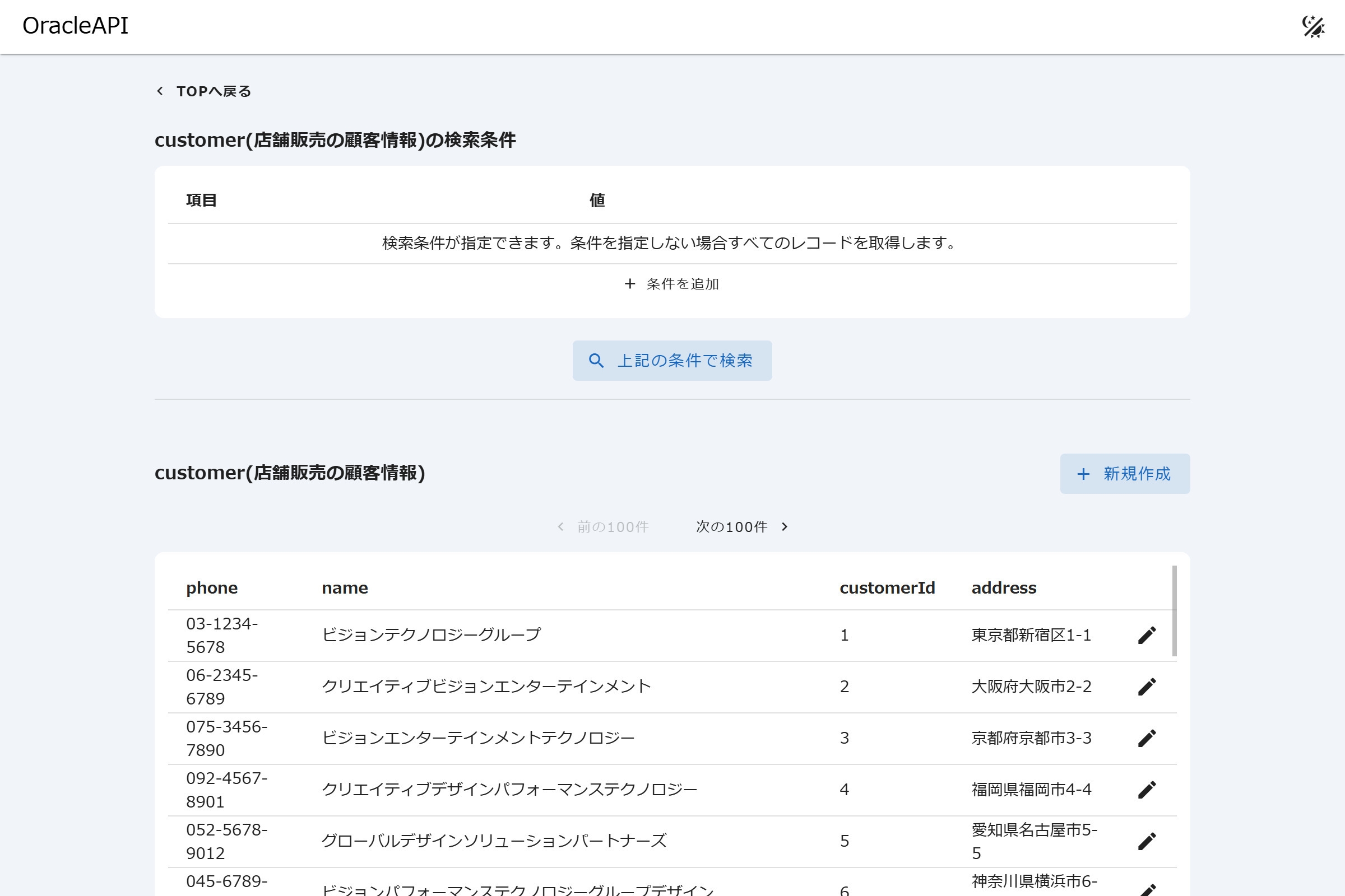 5種類のAPI(作成、読み取り、更新、削除、検索)に対応したWebアプリケーションUIを瞬時に生成します。