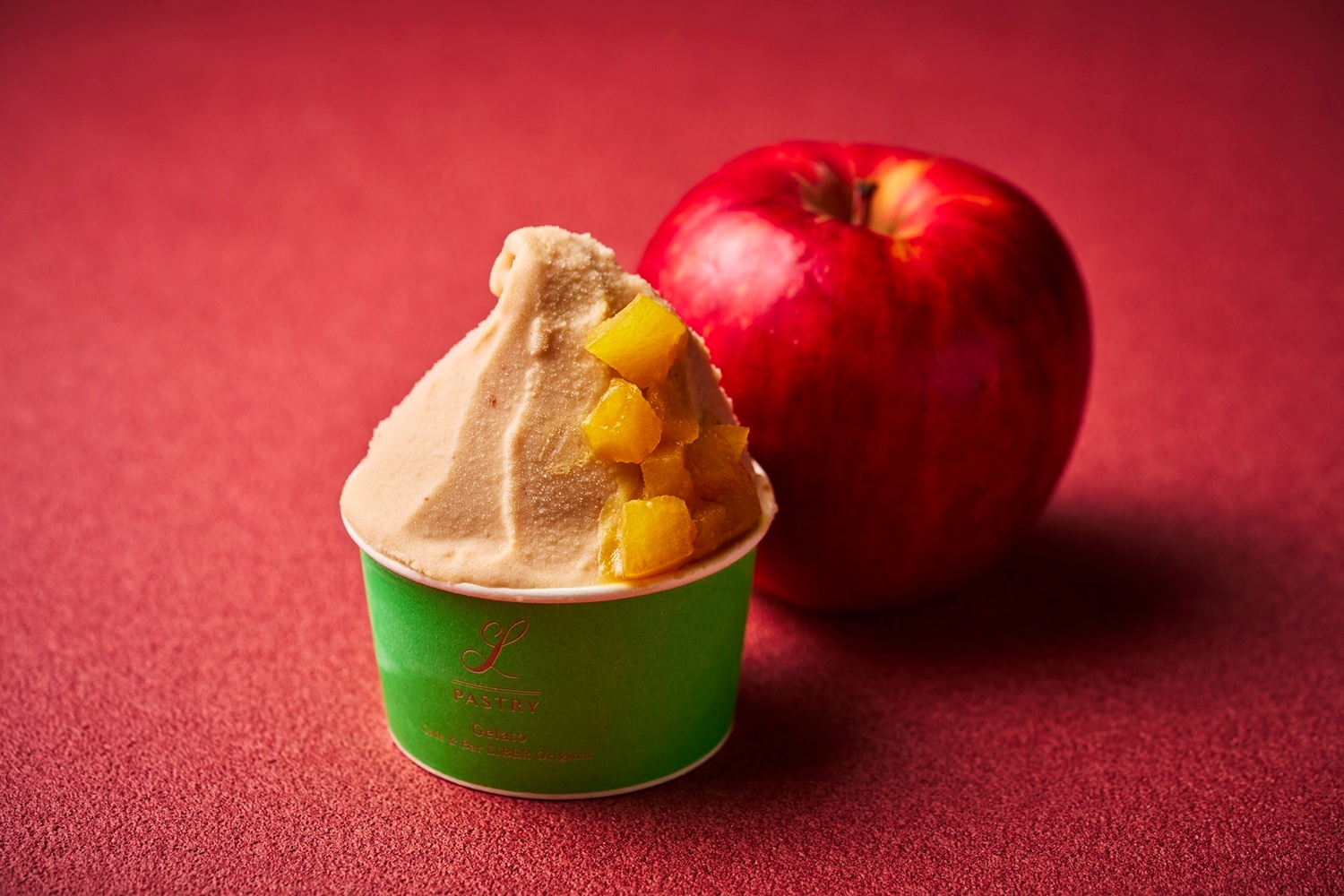 りんごの優しい甘みと、マスカルポーネのなめらかなコクを合わせた、やわらかな味わいのジェラート。ほんのりスパイスの香る上品なフレーバーが、口の中に広がります。
