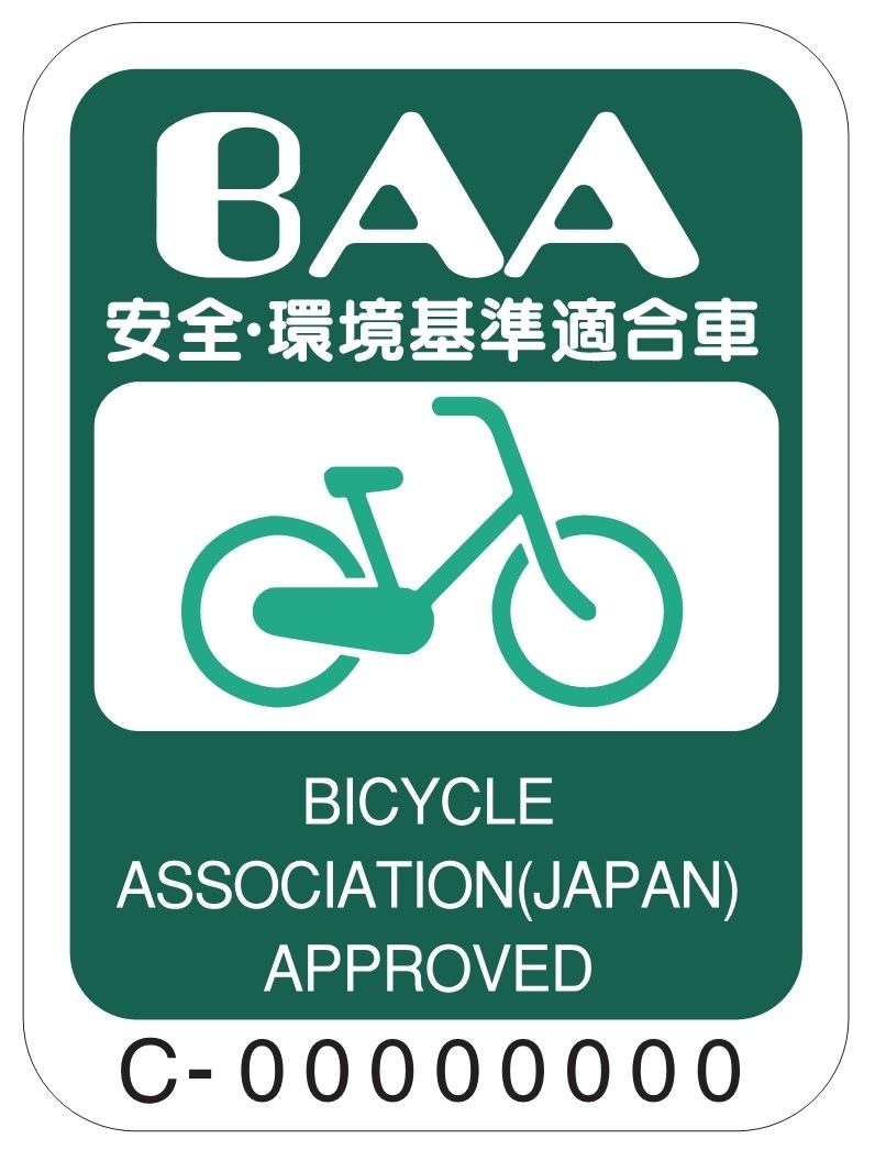 BAAマークは、一般社団法人自転車協会が定める自転車安全基準に適合した自転車に貼られています。自転車安全基準には全部で約90項目の検査項目があり、ブレーキ制動性能、フレーム・駆動部の強度、ライトの光度、リフレクターの反射性能などの検査に合格する必要があります。